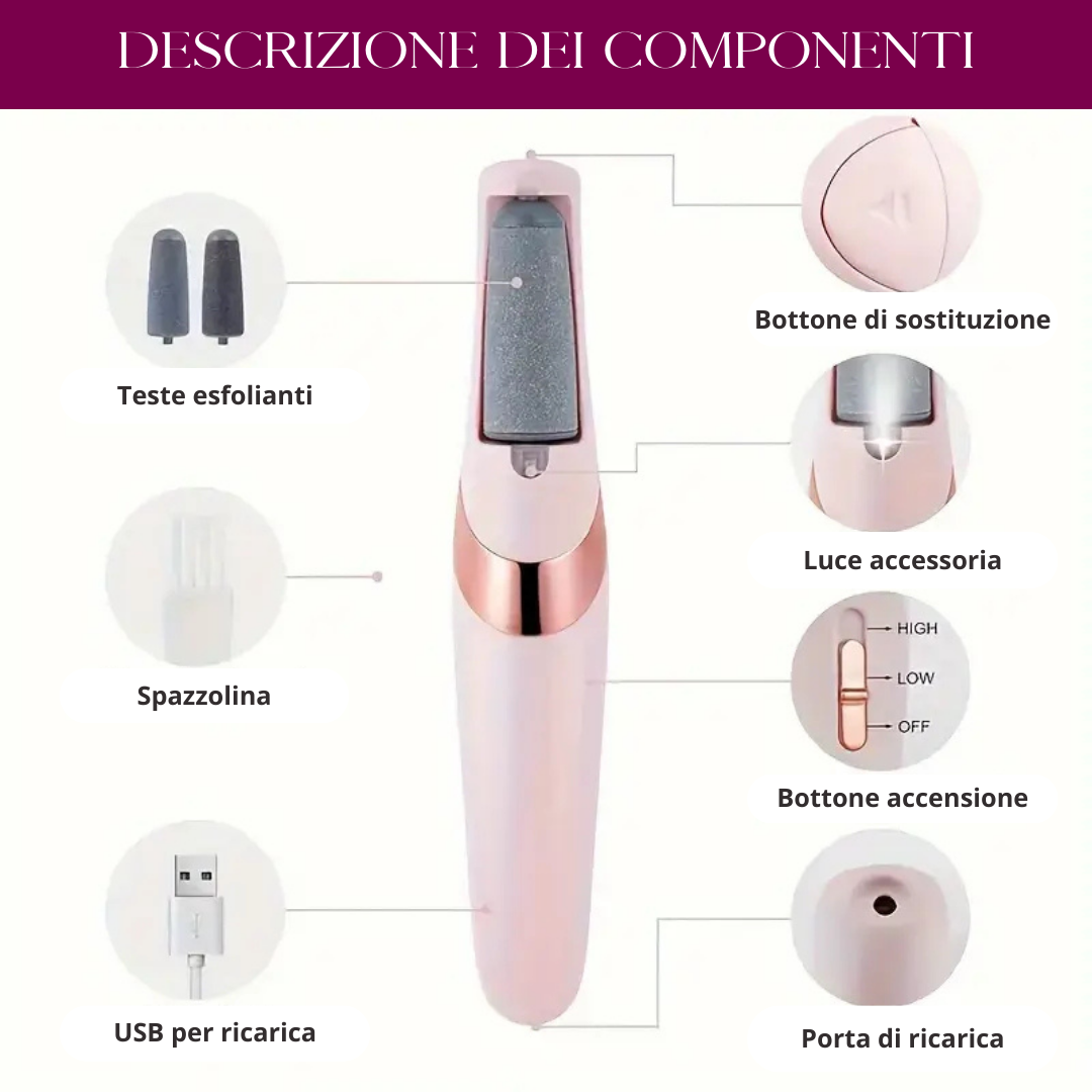 PEDIPURE è un kit esfoliante elettrico con cui avrai piedi morbidi e belli da mostrare